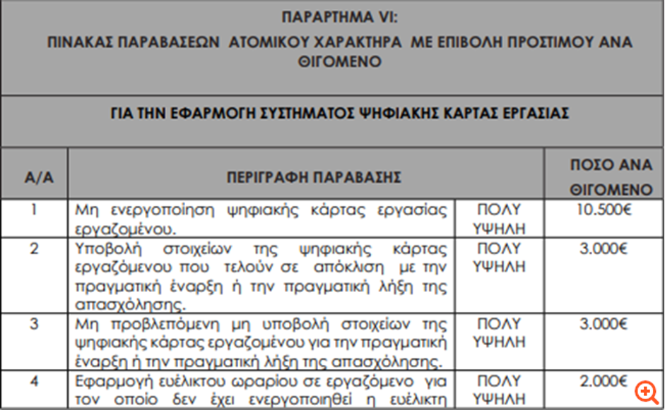Πιο ειδικά, με βάση την υπουργική απόφαση που εκδόθηκε στα τέλη του περασμένου μήνα, τα νέα πρόστιμα αφορούν στην πάταξη της βίας και παρενόχλησης στην εργασία, την Ψηφιακή Κάρτα Εργασίας και τις γονικές άδειες.